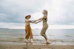 photo of women standing on beach