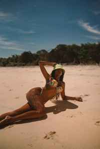 woman in a bikini lying on the beach