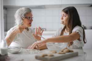 pensive grandmother with granddaughter having interesting conversation while cooking together in light modern kitchen July 9, 2020July 9, 2020