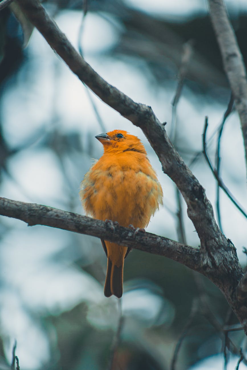 orange bird perched on tree branch