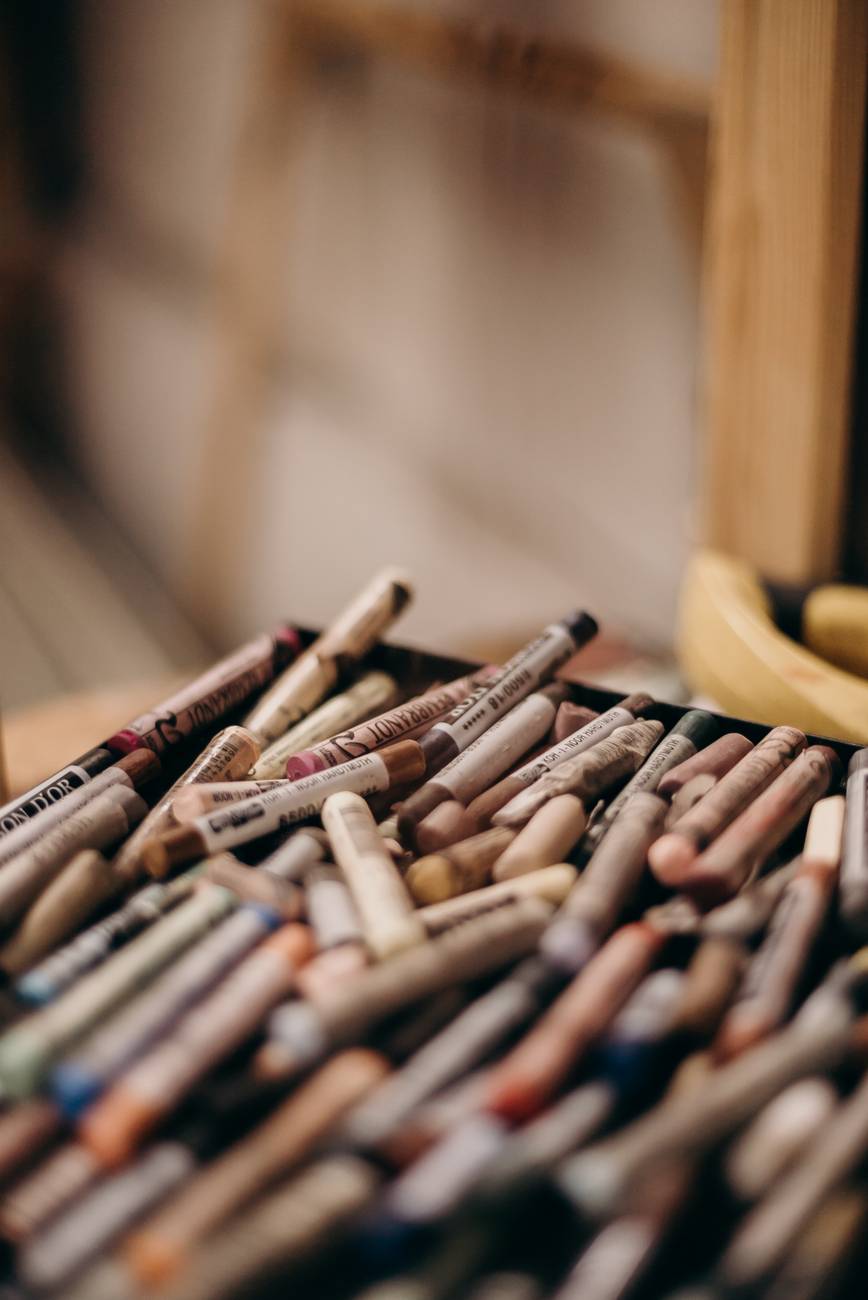 oil pastel on black tray