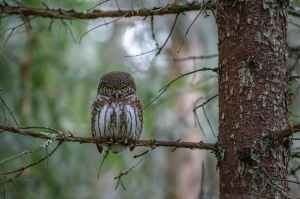 brown owl on perched on brown tree branch