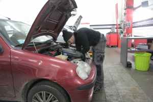 man in black jacket and cargo pants standing beside red car