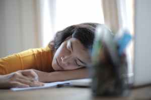 woman in yellow shirt resting on her arm