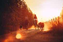 people riding horses during sunset
