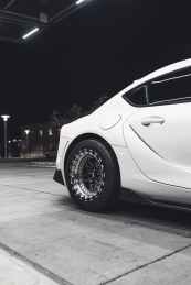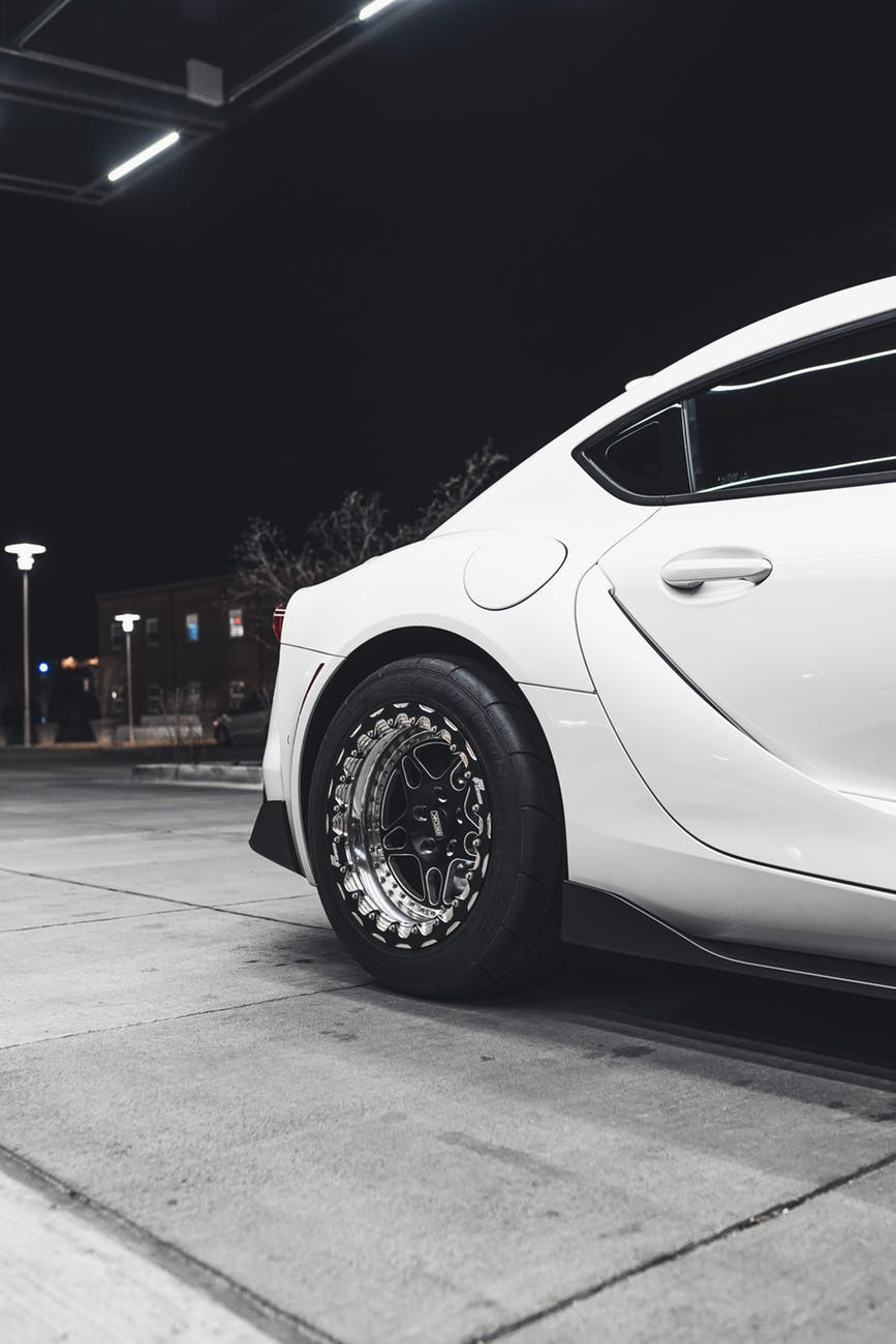 white car on gray concrete road during night time