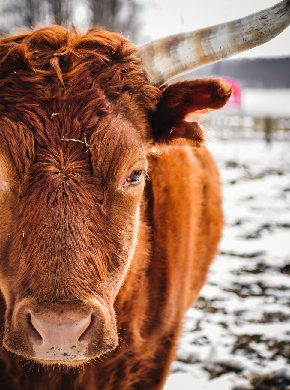 brown cow on snow covered ground