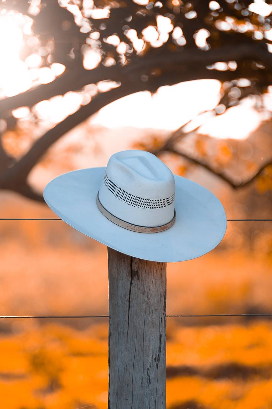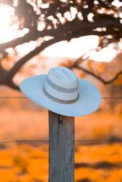 white fedora hat on a fence