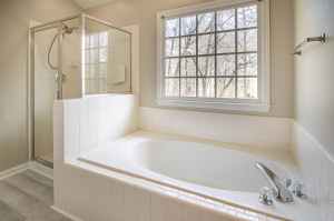 white bathtub near white framed window