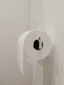 white toilet paper roll on silver holder