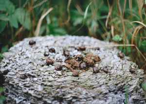 snails on brown surface