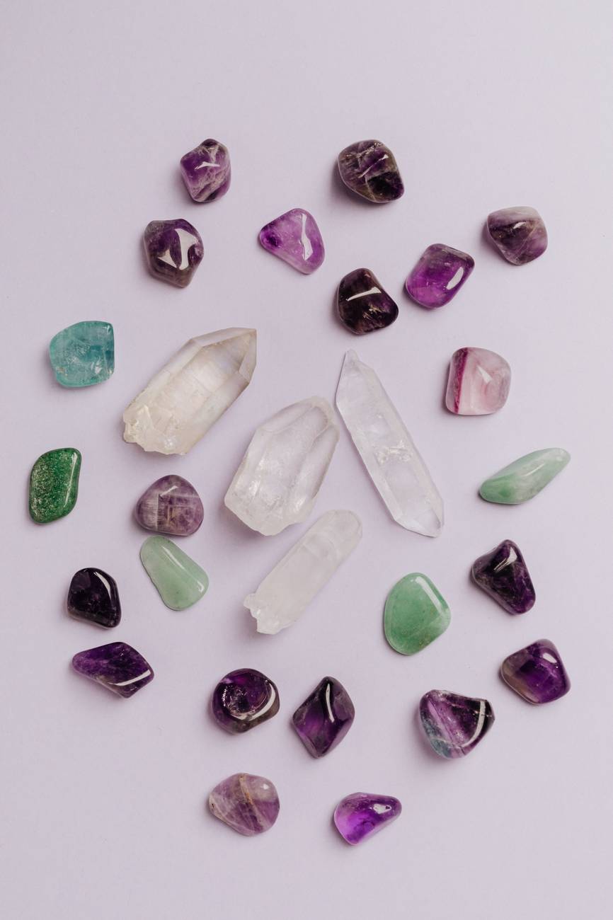 set of colorful semiprecious stones placed chaotically on gray tabletop in jewelry store July 27, 2020