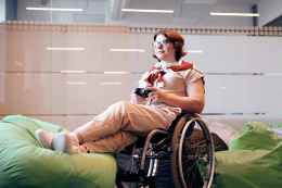 woman sitting on black wheelchair while holding joystick