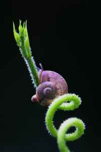 brown snail on green plant
