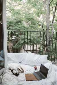 laptop on bed near the balcony