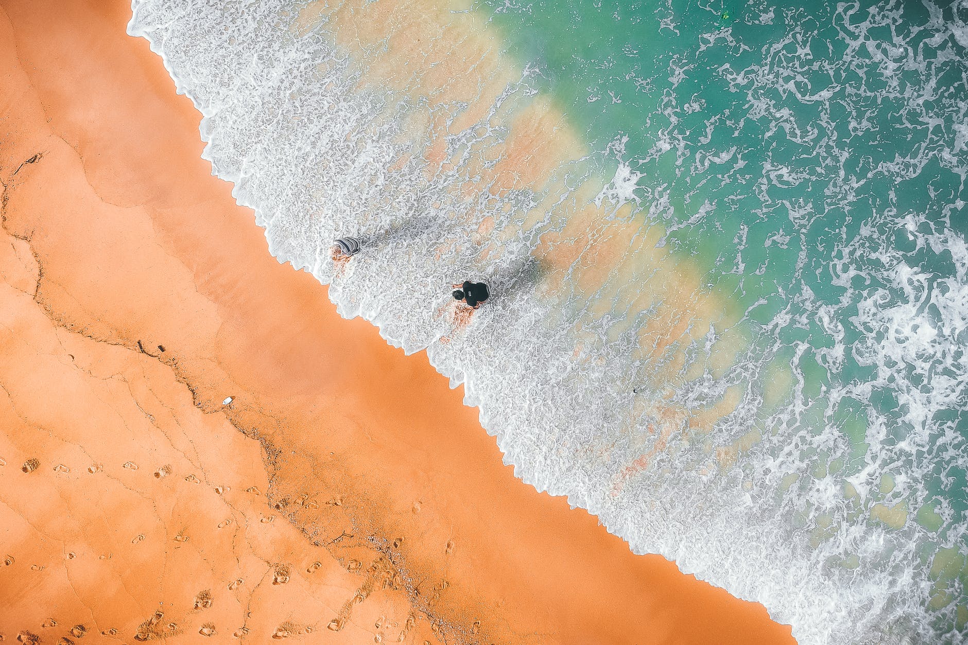 unrecognizable travelers on sandy shore near foamy sea during vacation