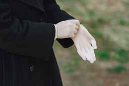 crop woman wearing latex gloves during pandemic