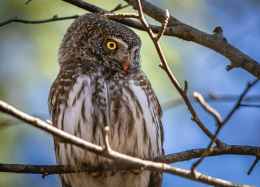 white and brown owl on brown tree branch