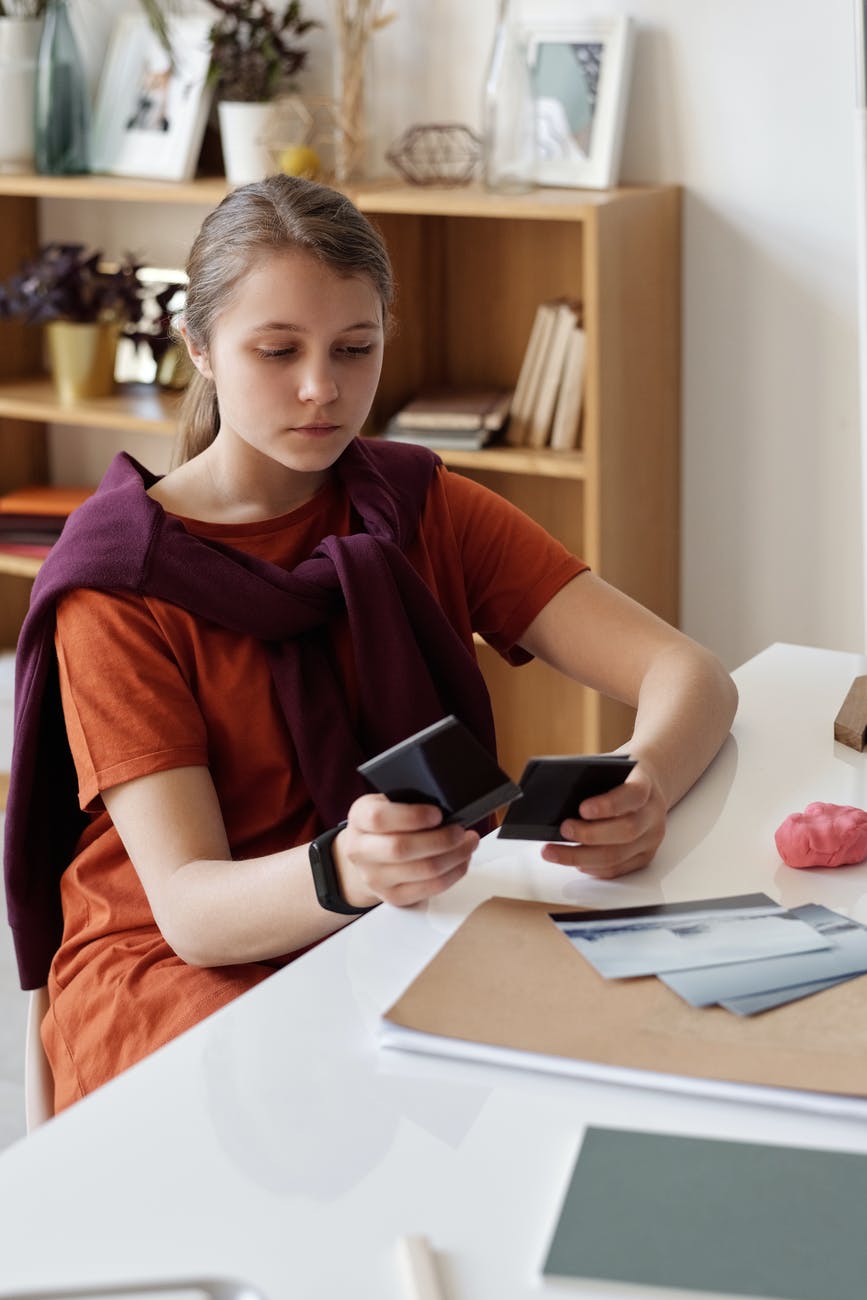 girl reminiscing about her photos