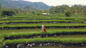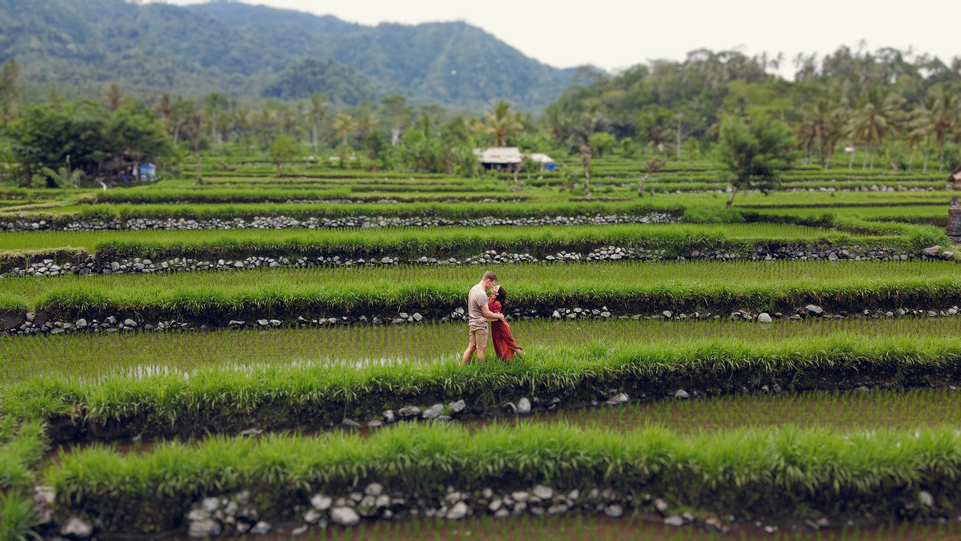 couple hugging in green tropical field