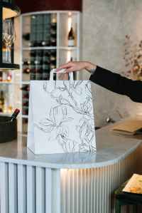 person holding white and black floral paper