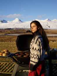 young woman with grill in countryside