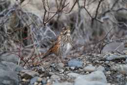 redwing bird on ground in autumn