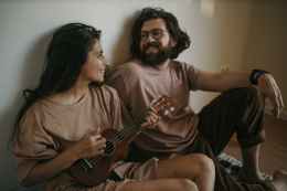 man in brown crew neck t shirt sitting beside woman in brown crew neck t shirt
