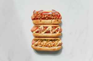 hotdog sandwiches on white background