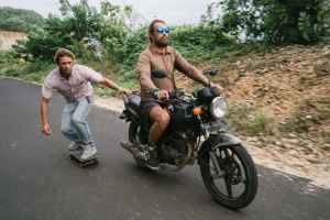 extreme dangerous ride of skater and biker