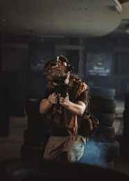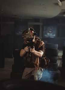 photo of man holding black rifle