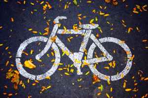 white bicycle road sign