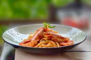 close up photography of cooked shrimps and pasta