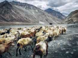 herb of goat beside mountain