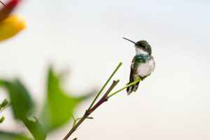 white and black bird on plant