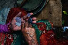 person holding coins
