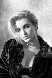 young trendy woman in bra and fur coat
