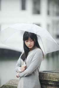 woman wearing gray sweater holding clear umbrella