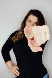 woman in black long sleeved shirt