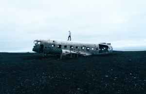 person standing on wrecked plane