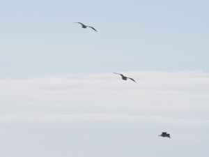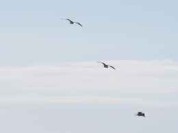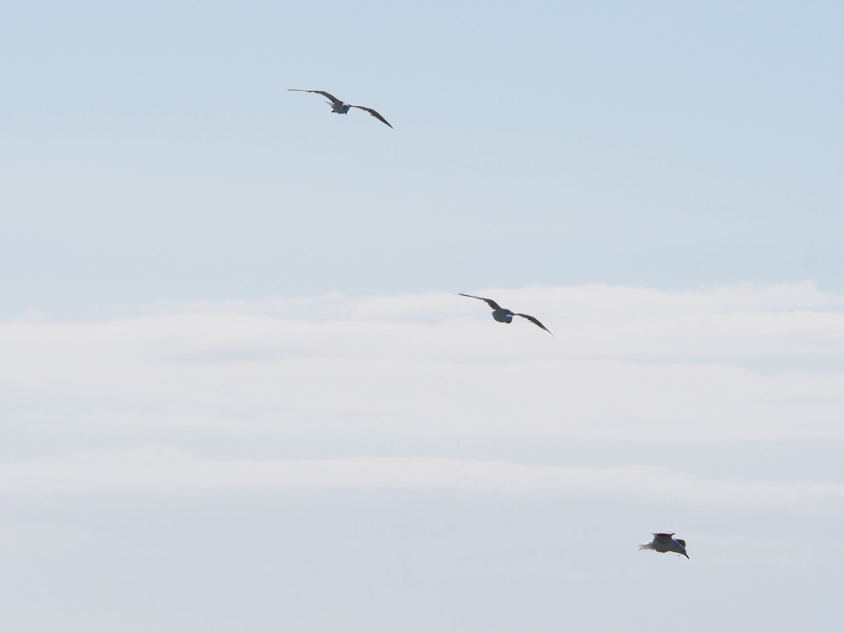 three birds flying under blue sky at daytime