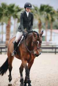 woman rides brown horse