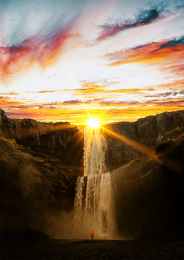 waterfalls during sunset